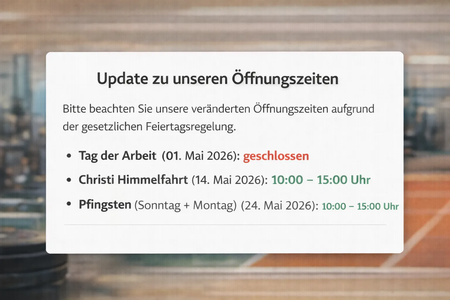 - auf der Trainingsfläche an den Kraft- und Cardiogeräten